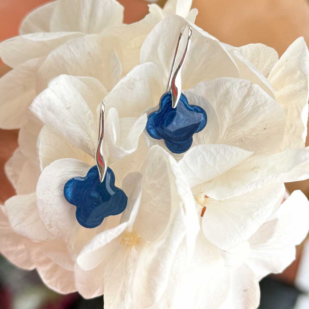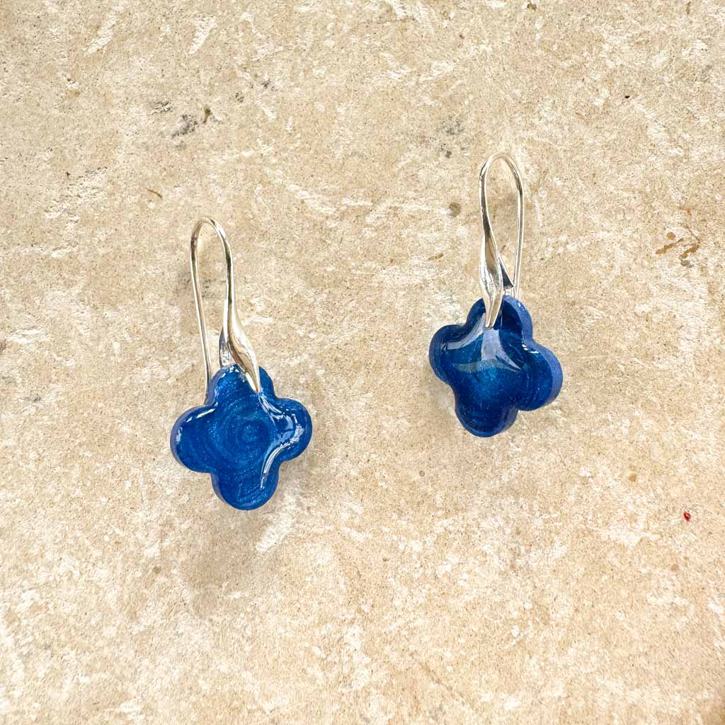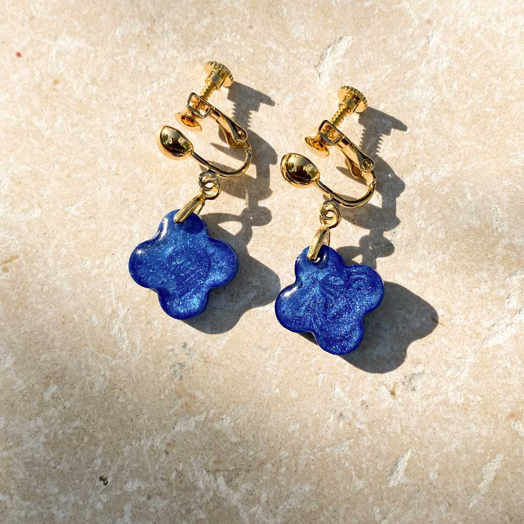 If you'd like to create a "celestial" set, you'll receive a 15% discount with the code PARURE to add to your cart. Four-lobed crosses, 1.5 cm high and 1.5 cm wide. The slightly sparkling blue mica inside will always vary a little and have its own poetry. Gold- or silver-plated setting, for pierced ears or clips.