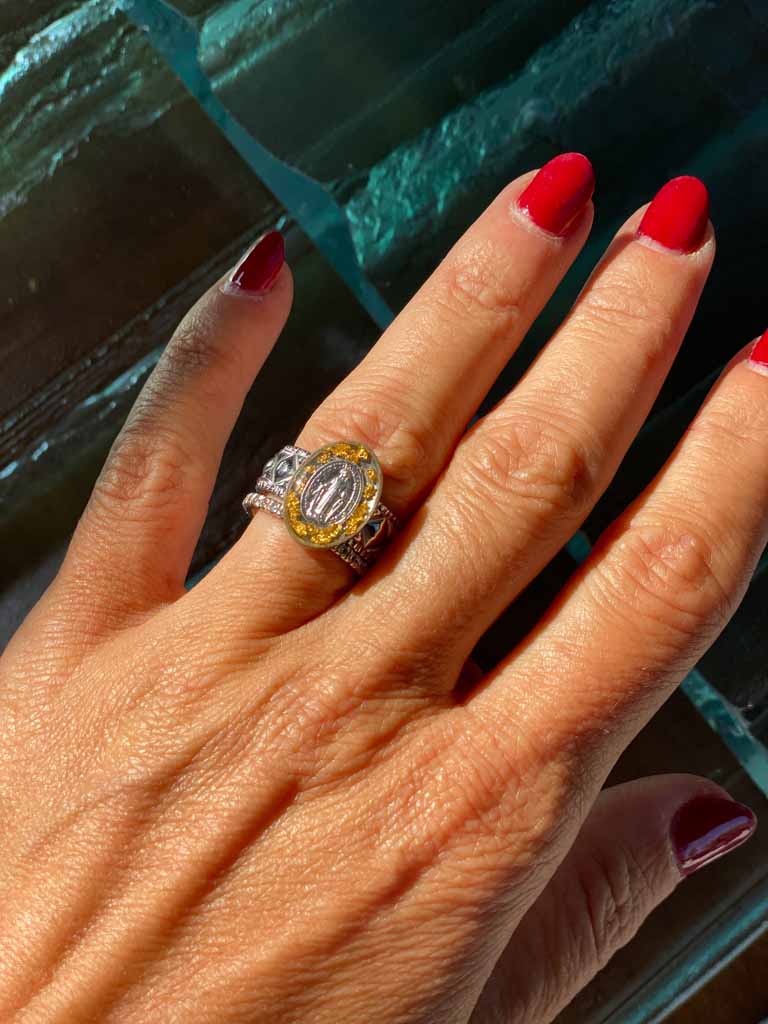 Sogno che le mani adornate con questo anello si ispirino nei loro gesti dalla dolcezza di Maria. Le nostre mani siano strumenti di bontà e consolazione!