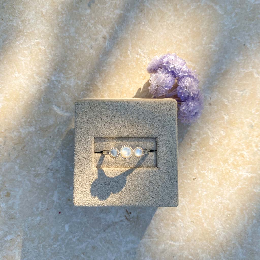 Un anello bello E con un significato profondo (è proprio questo il mio obiettivo: gioielli che possano deliziare gli occhi e il cuore! ). Un anello che può essere indossato nel mondo e che non è del mondo. Amo le liturgie delle ore monastiche, ogni volta che i monaci cantano e si inchinano:"Gloria Patri et Filio et Spiritui Sancto". Volevo che questa presenza orante della Trinità fosse presente nella nostra vita quotidiana. Così ho scelto una pietra identica (perché sì, le tre persone sono una sola!) che fosse un richiamo per i nostri cuori.