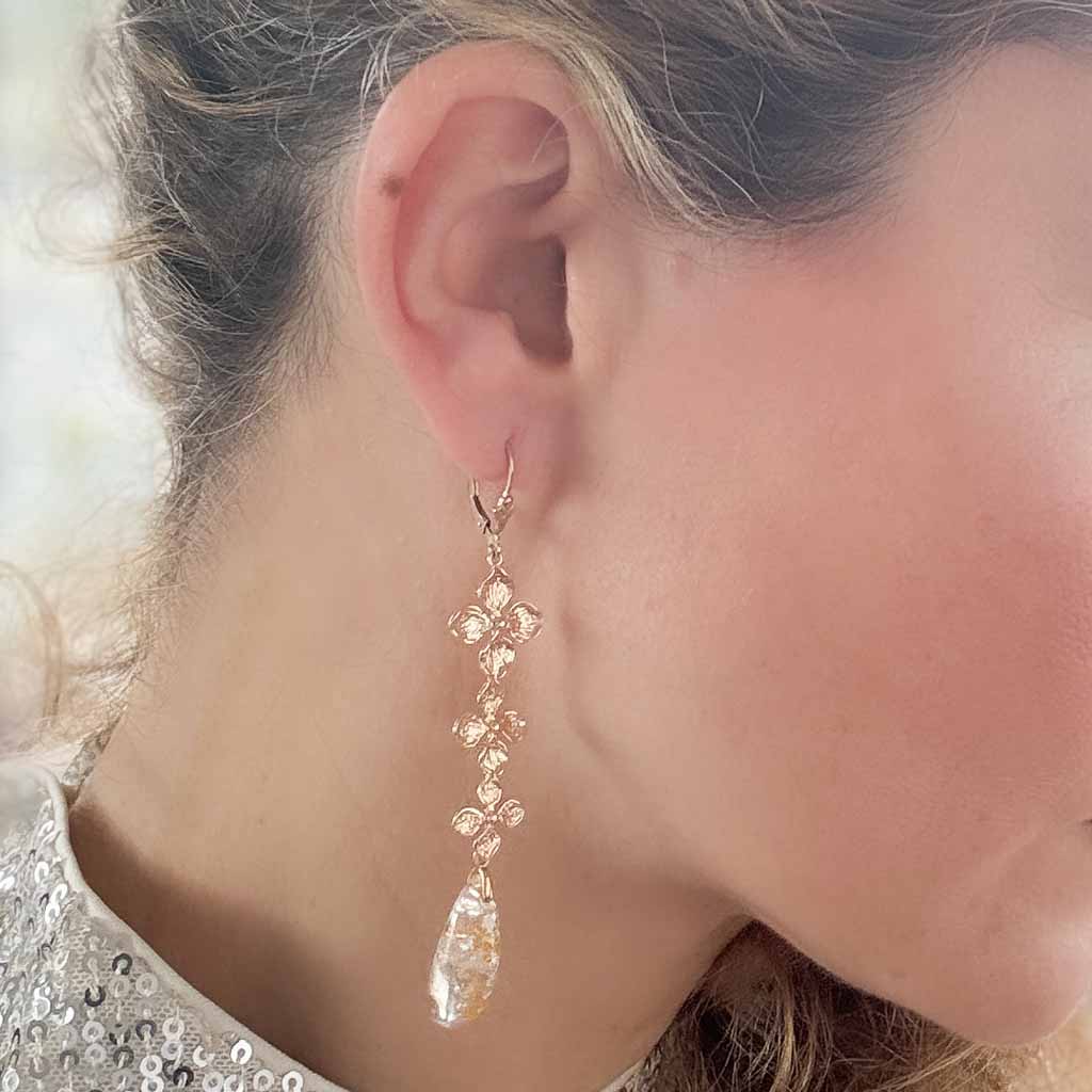 Da qualche anno mi piace alzarmi presto. L'alba non mi delude mai. È in questi momenti che mi rendo veramente conto della bellezza della giornata, di quanto sono fortunata a vivere un altro giorno su questa terra, e che sono sopraffatta dall'emozione e dalla gratitudine. Santa Teresina ha - come spesso accade - ragione: tutto è grazia. Intorno a noi, se apriamo gli occhi, siamo già così benedetti dalle nostre famiglie, dai luoghi in cui viviamo, dal tetto sopra la nostra testa. E quando arrivano le nuvole, non dobbiamo far altro che cambiare il nostro punto di vista e dirci che la vita ci insegnerà qualcosa nel momento della prova. Ma è così facile dimenticare tutta la ricchezza immateriale che ci circonda. Così ho creato questi orecchini lunghi e scintillanti per portare nei nostri cuori e nelle nostre anime la prodigalità della vita che scorre nelle nostre vene come una fontana di grazia!
