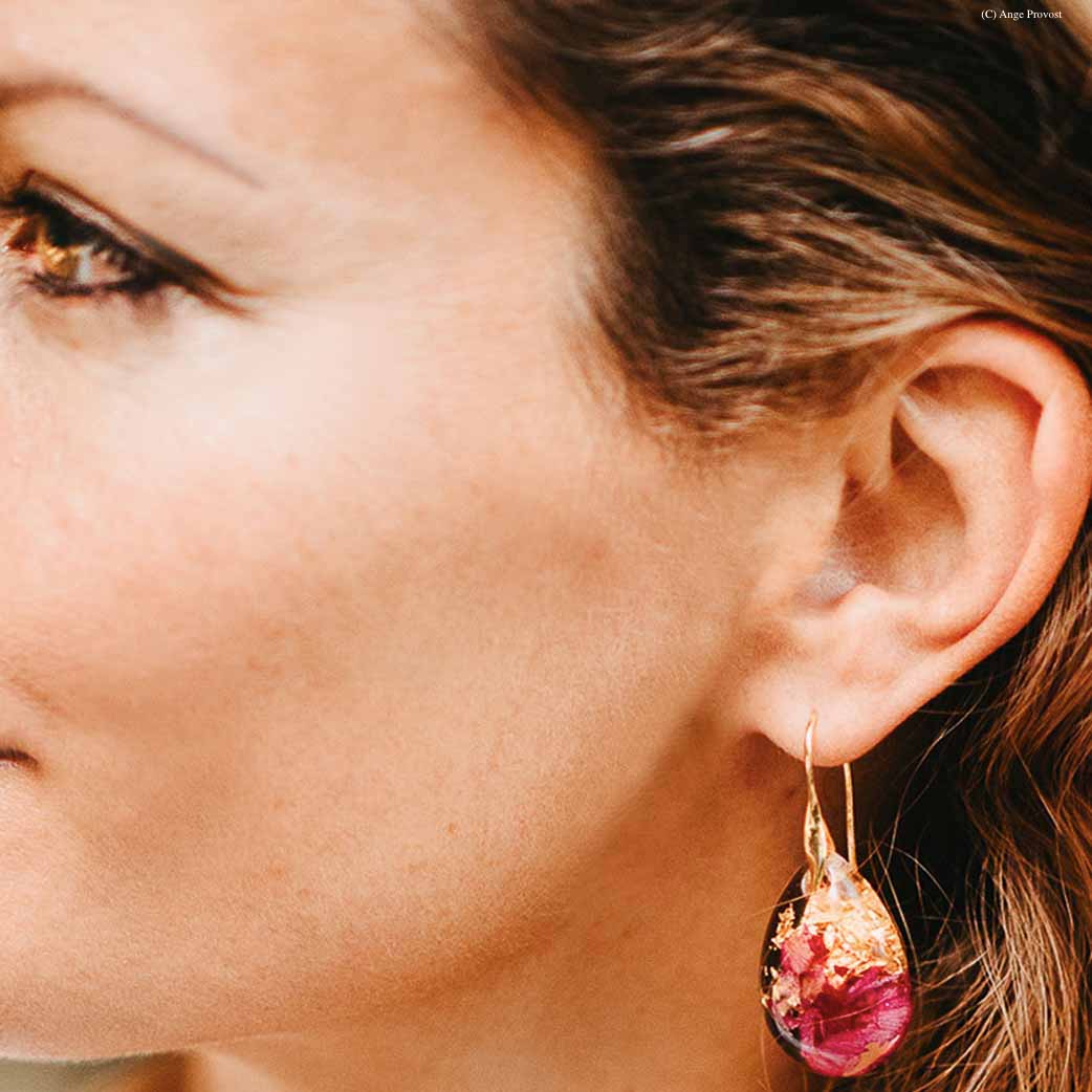 Come gli Orecchini con petali di rose, sono nati da una ricerca personale. Mi piacciono moltissimo gli orecchini ! Ma non ne ho mai trovati che avessero senso... E i pochi orecchini spirituali che ho trovato non erano molto graziosi. Volevo qualcosa di carino, femminile e spirituale!
