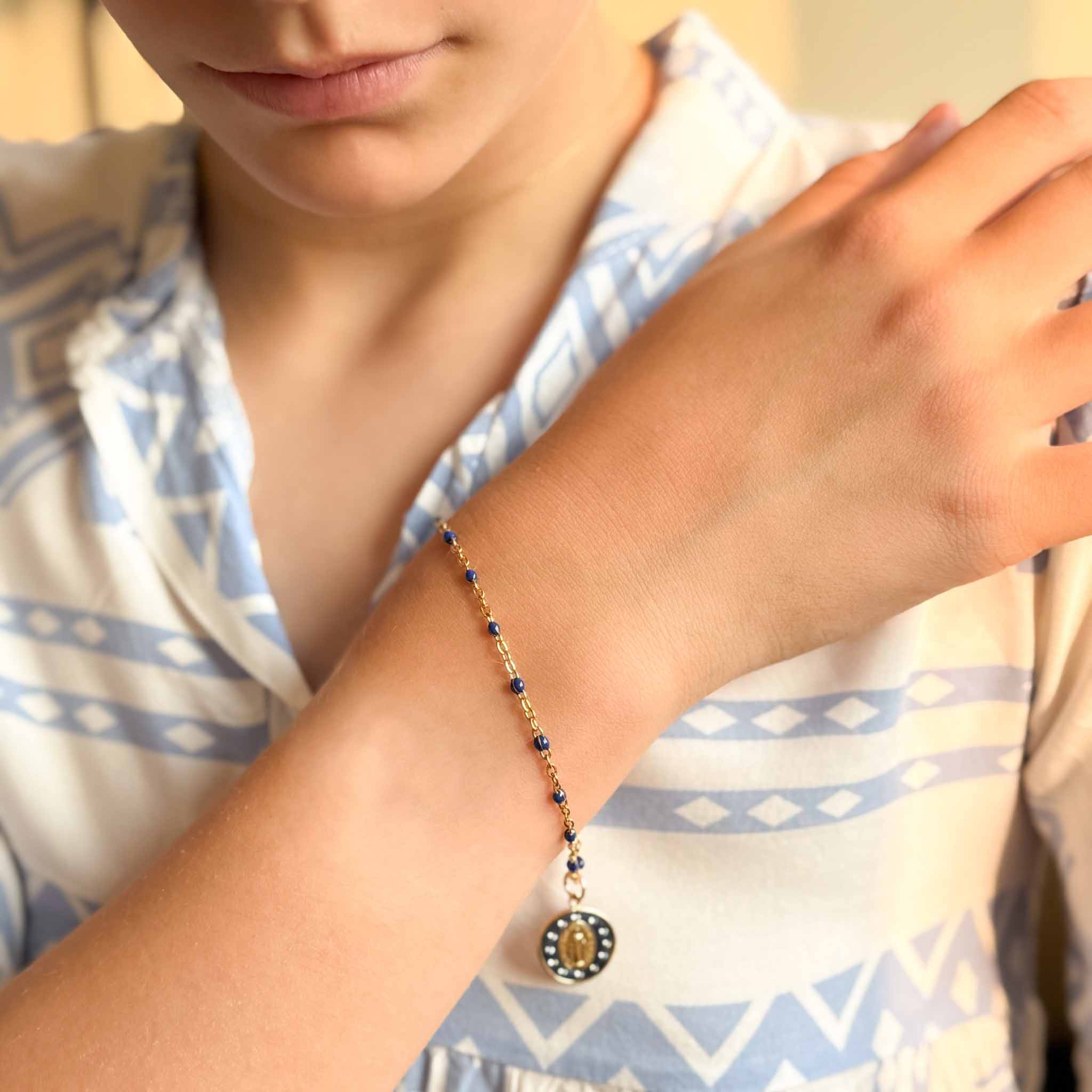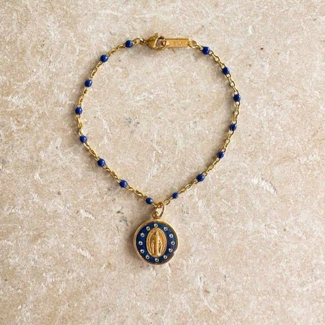 Il braccialetto è venduto da solo, ma ho dato un suggerimento per un set che mi è sembrato così elegantemente ovvio. Per questo braccialetto santa , l'ho abbinato al mini miracolo coronato di stelle, ma sta a voi assemblare le mini medaglie o croci con questi braccialetti!