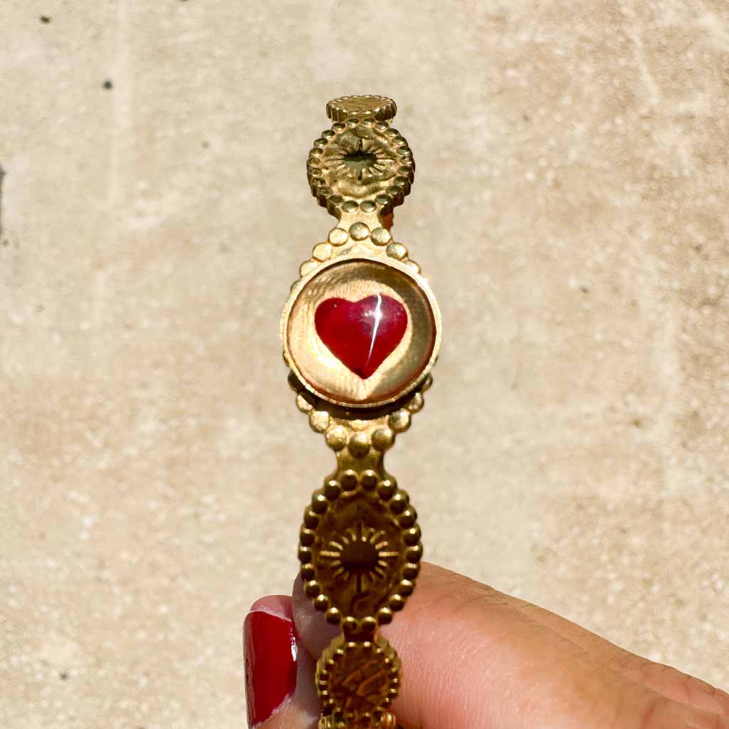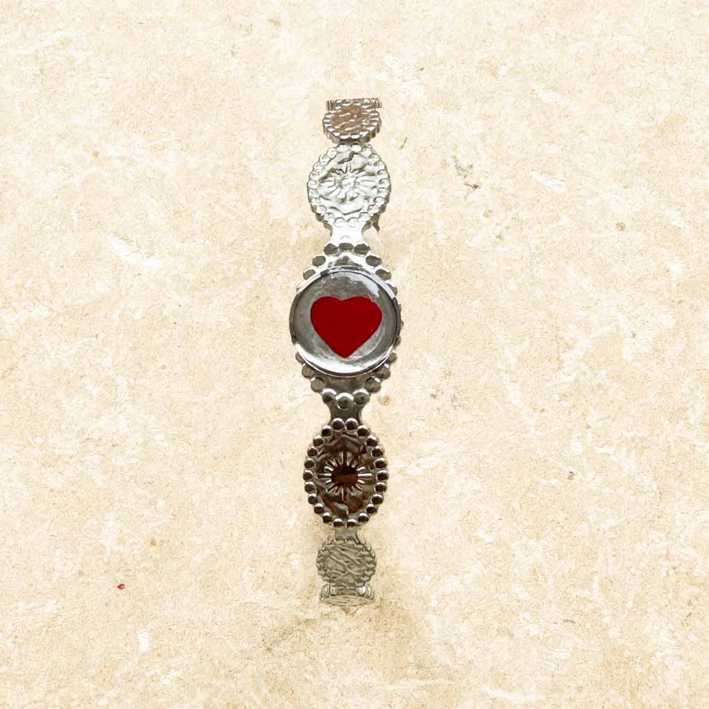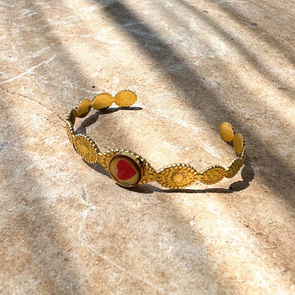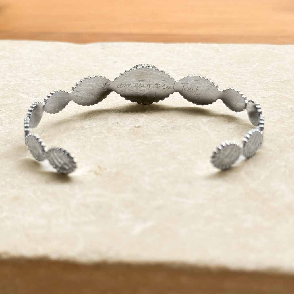 Non so voi, ma ci sono momenti in cui mi sento sopraffatta da tutti i lati. Soprattutto all'inizio del nuovo anno scolastico. Le tanto attese vacanze sono già finite, proprio quando si ha tanto bisogno di una pausa, e il carico mentale torna a farsi sentire. Si prospettano momenti davanti a sé che non si sa come superare. In questo caso, la cosa più semplice da fare è resistere con la forza. Ma è il metodo più efficace? Alla fine ci si irrigidisce, ci si tende, ci si indurisce. Ma non è certo la spinta migliore. La risorsa che non ha limiti e che ci permette di trionfare su tutto è l'amore. Si può fare la stessa cosa con lo sforzo o con l'amore, ma non è la stessa cosa. L'amore è flessibile, tenero, paziente, perseverante e filosofico. Ho creato questo braccialetto per ricordarci più volte al giorno, attraverso questo piccolo cuore incandescente, qual è il motore giusto da attivare dentro di noi. Niente per forza, tutto per amore. Ci credo davvero, al punto da inciderli a mano, uno per uno, sul retro di questi braccialetti, come il segreto più efficace che conosco per vivere!