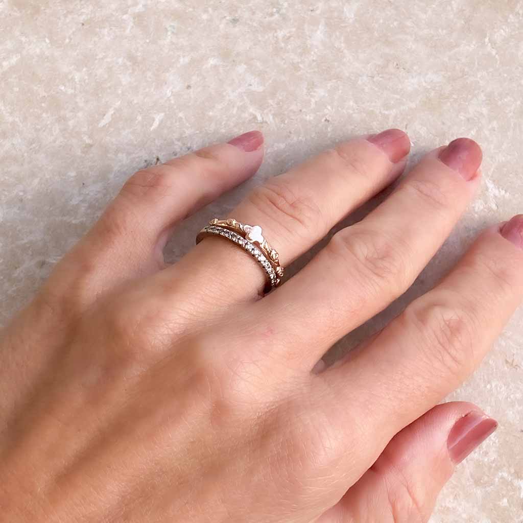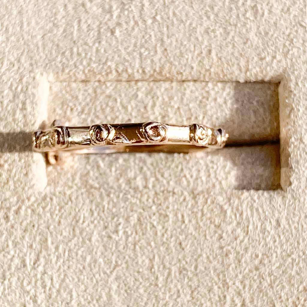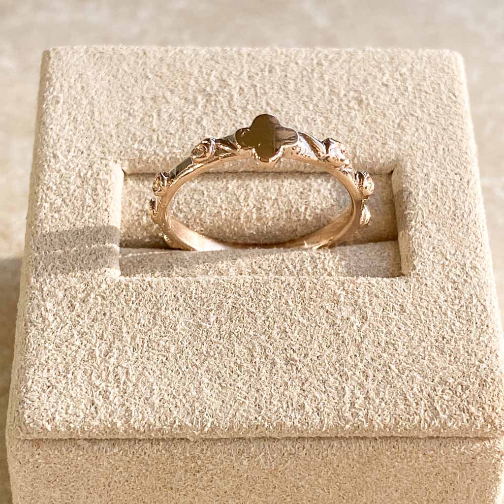 È un anello per tutta la vita, da portare accanto alla fede nuziale, ad esempio, o al mignolo, a seconda dei gusti. L'oro champagne è un colore antico che è bello riportare in auge. È un colore delicato, a metà strada tra il giallo e il rosa, che lo rende facilmente abbinabile a qualsiasi cosa. La tonalità è delicata, con uno scintillio più raro.