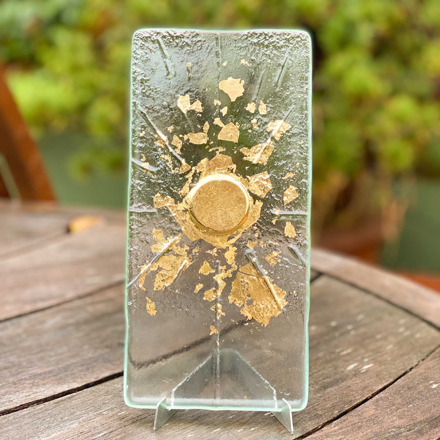 Questa icona di vetro è scolpita a mano e termoformata in vetro a oltre 800 gradi.