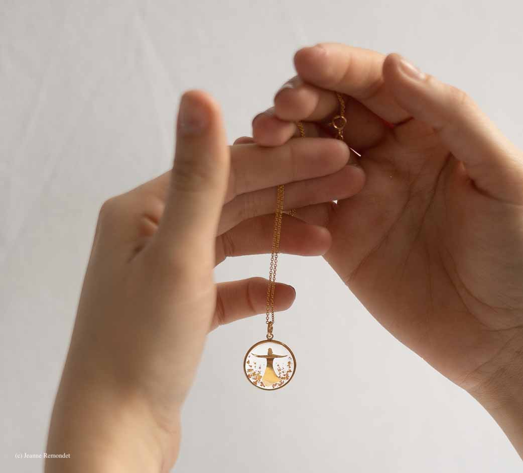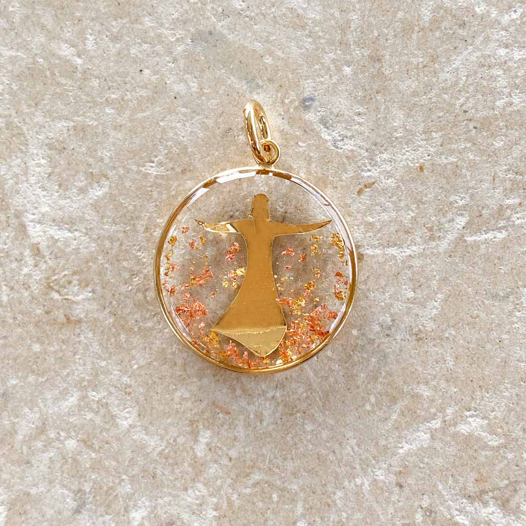 Gioielli artigianali,anello gold filled, Cristo in ottone, foglia d'oro e di rame. Il medaglione ha un diametro di 2 cm. Viene venduto senza Catenina. Per preservare la brillantezza del gioiello, si consiglia di tenerlo lontano da acqua e profumi e di riporlo in una scatola quando non viene utilizzato.