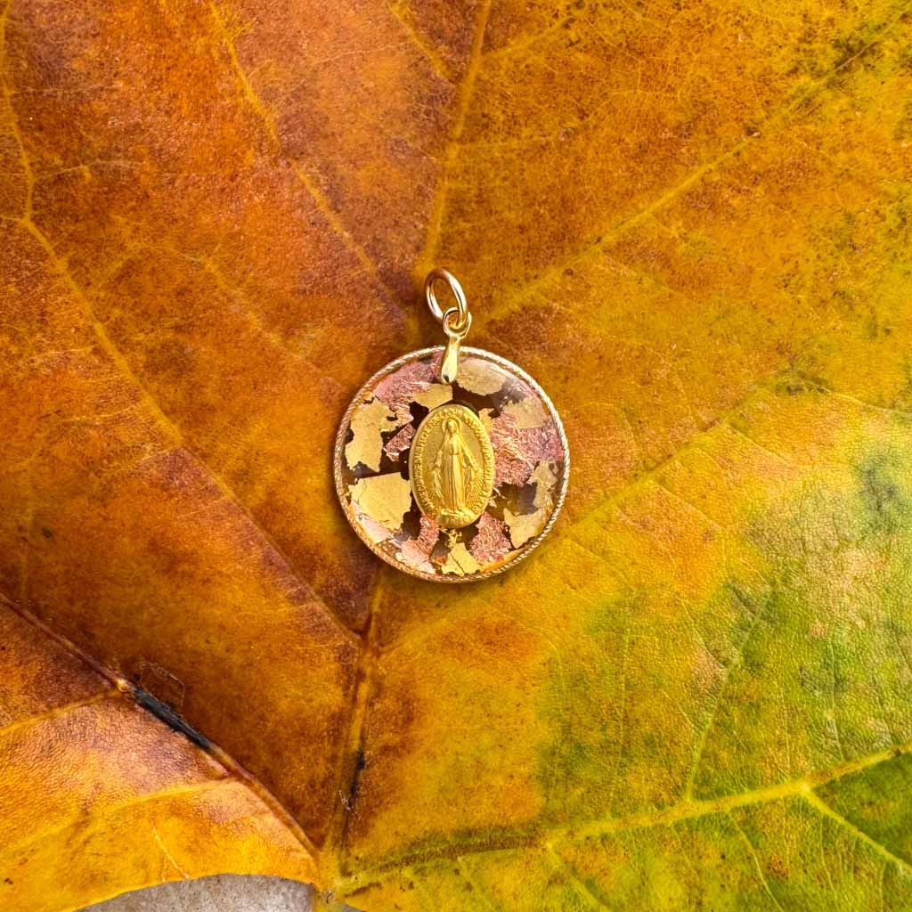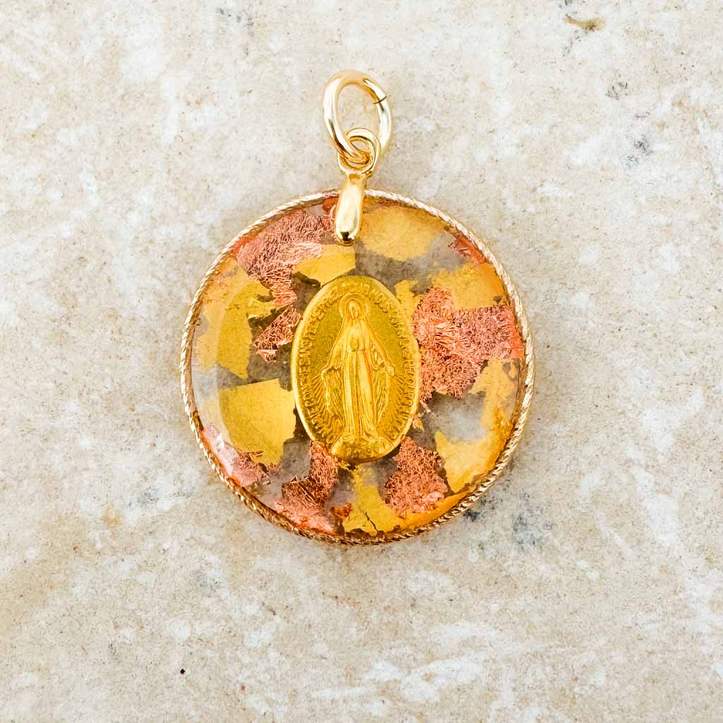 Medaglia placcata in oro gold filled diamantato 20 mm, medaglia miracolosa della Rue du Bac, foglia d'oro e di rame.