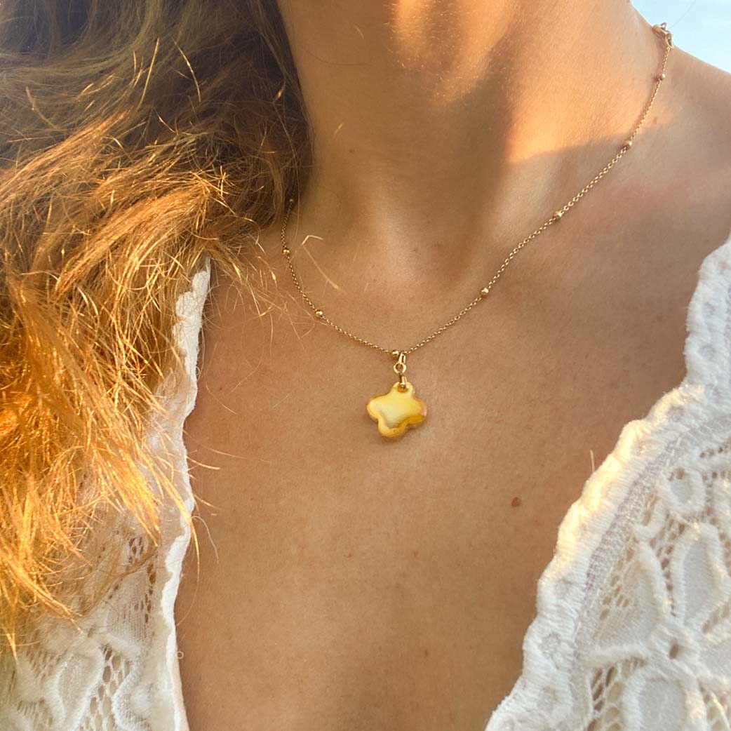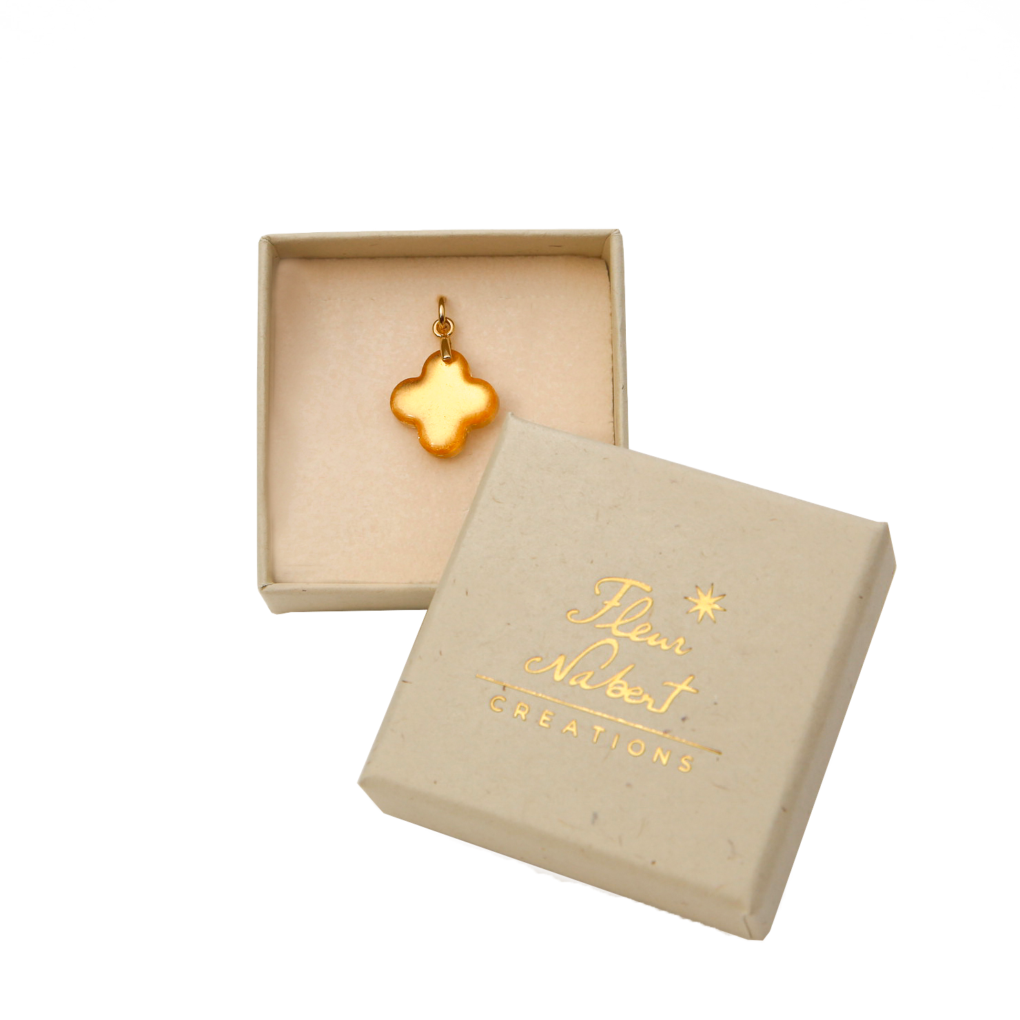 Questo modello è disponibile anche come orecchini pendenti,o come set completo croce + orecchini. Se desideri creare una parure oro, puoi approfittare di uno sconto del 15% con il codice PARURE da aggiungere al carrello. Croce quadrilobata, alta 1,5 cm e larga 1,5 cm. La foglia inserita all'interno varierà sempre leggermente e avrà una sua poesia. La croce in foglia d'oro giallo è montata su argento placcato oro giallo a 3 micron. Viene qui presentata sulla Catenina Elisabeth e con lascatolina firmata color neutro, opzioni che potete scegliere anche voi. Può anche essere montata su un bracciale in tessuto o in metallo!
