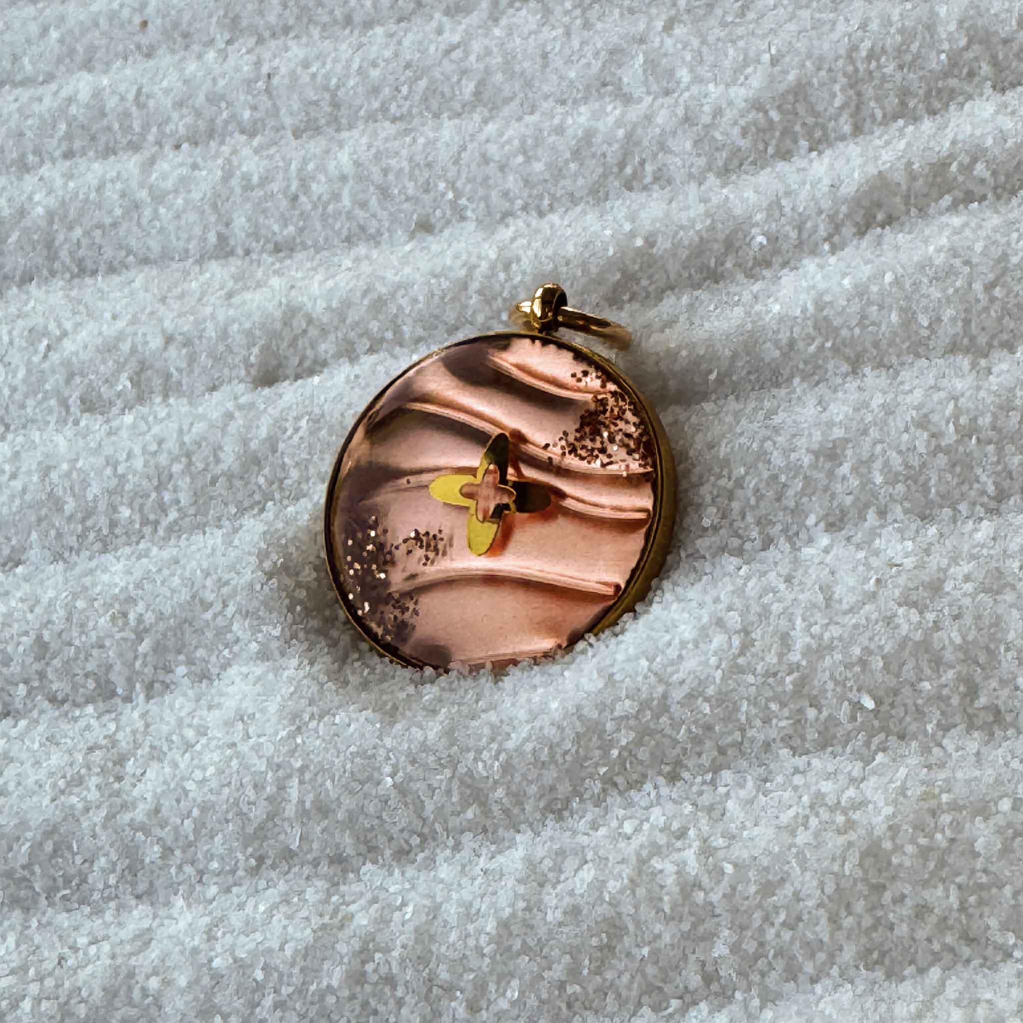 Médaille en acier inoxydable cuivre et résine.