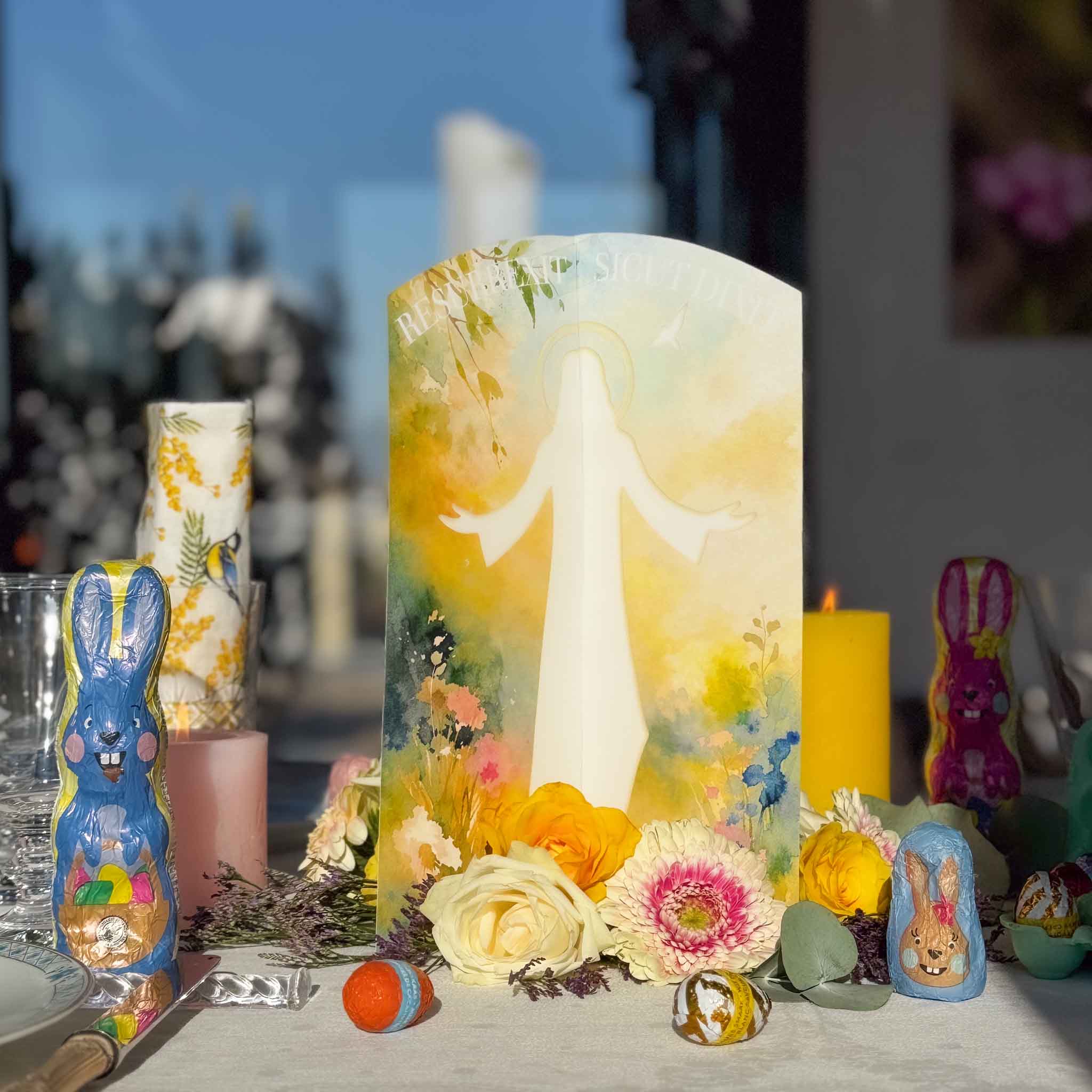Je vous invite à découvrir également une initiative qui me tenait à cœur : le centre de table de Pâques pour que le lapin et les œufs en chocolat ne volent pas la vedette au grand Mystère de cette belle fête de Pâques !